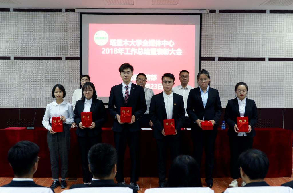 全媒体中心主任杨宝仁总结了2018年度工作成效,提出了2019年工作计划。宣读了《关于表彰塔里木大学2018年度全媒体中心“优秀记者”和“优秀讲解员”的决定》。党委宣传部文化管理科科长马丽娟宣读了《关于对梅泽宇等同学聘任的决定》、《关于聘任王斌等32名同学为正式记者的决定》。