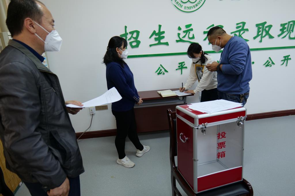 宣传委员宣读《机关第六党支部换届选举办法》,大会通过了候选人名单、监票人、计票人名单。每位正式党员投下神圣的一票。在充分酝酿的基础上,采用无记名投票方式差额选举陈蕾、张燕飞、余明星、张建华、雍飞为新一届支委会成员。