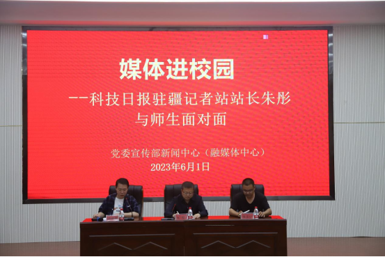 6月1日下午,党委宣传部全媒体中心邀请科技日报驻疆记者站站长朱彤老师来校与宣传骨干面对面交流。党委宣传部副部长杨宝仁、党委宣传部工作人员、教工签约通讯员代表、全媒体中心学生干部以及记者代表参加。活动由新闻中心(融媒体中心)主任余明星主持。