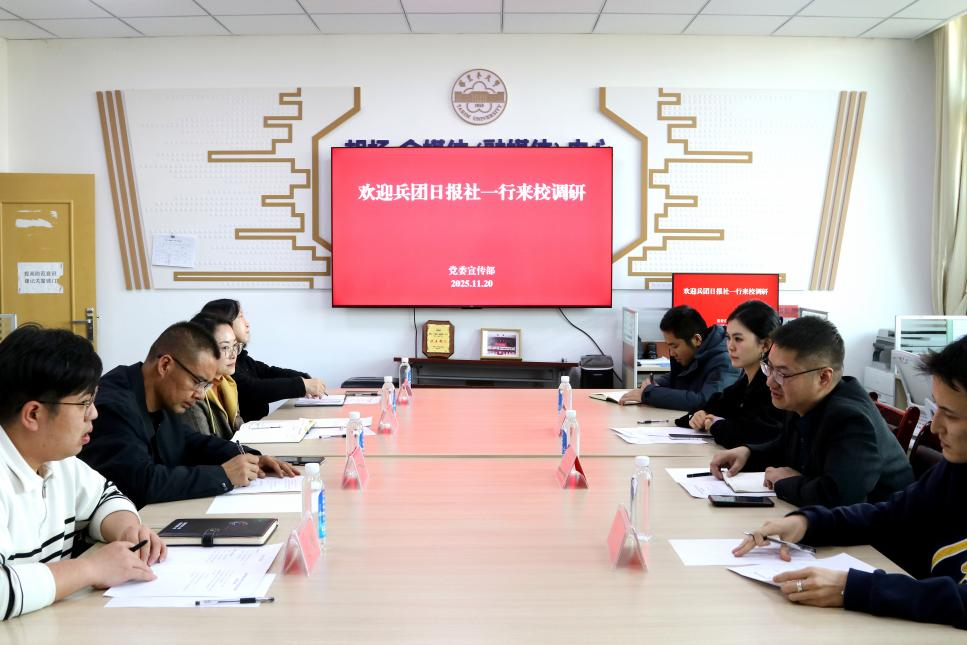 11月20日,兵团日报社广告部副主任张乐一行来校交流,与党委宣传部副部长杨宝仁等领导进行座谈交流。