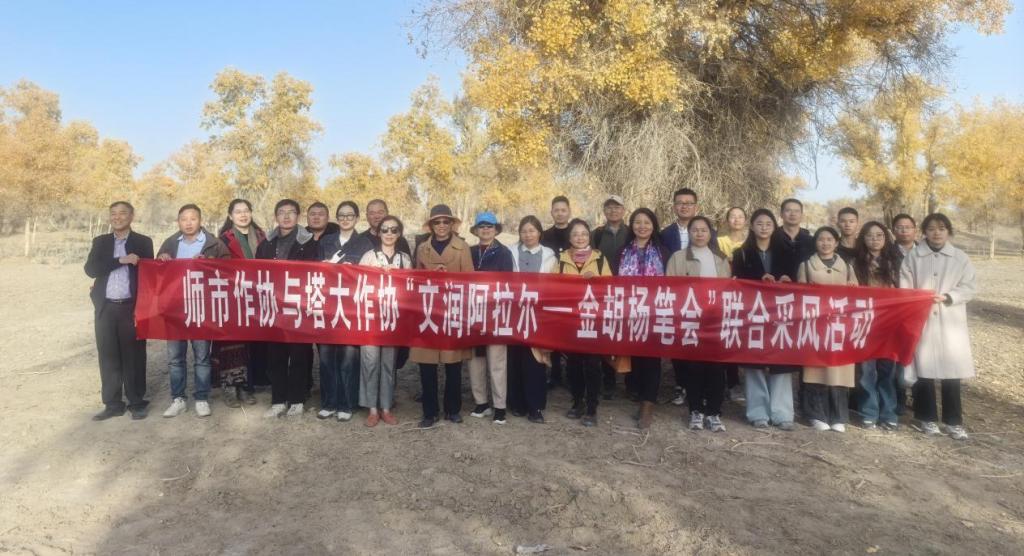 秋深叶黄,胡杨鎏金。近日,阿拉尔市作家协会与塔里木大学作家协会联合举办“文润阿拉尔·金胡杨笔会”采风活动。三十余位作家及文学爱好者齐聚十二团胡杨林,共赏金秋胡杨,共书大漠华章。