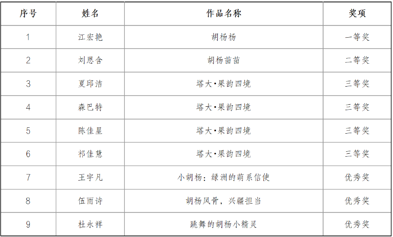 公示期满无异议后,学校将正式为获奖人员颁发“胡杨印象”新媒体作品征集活动荣誉证书及纪念奖品。